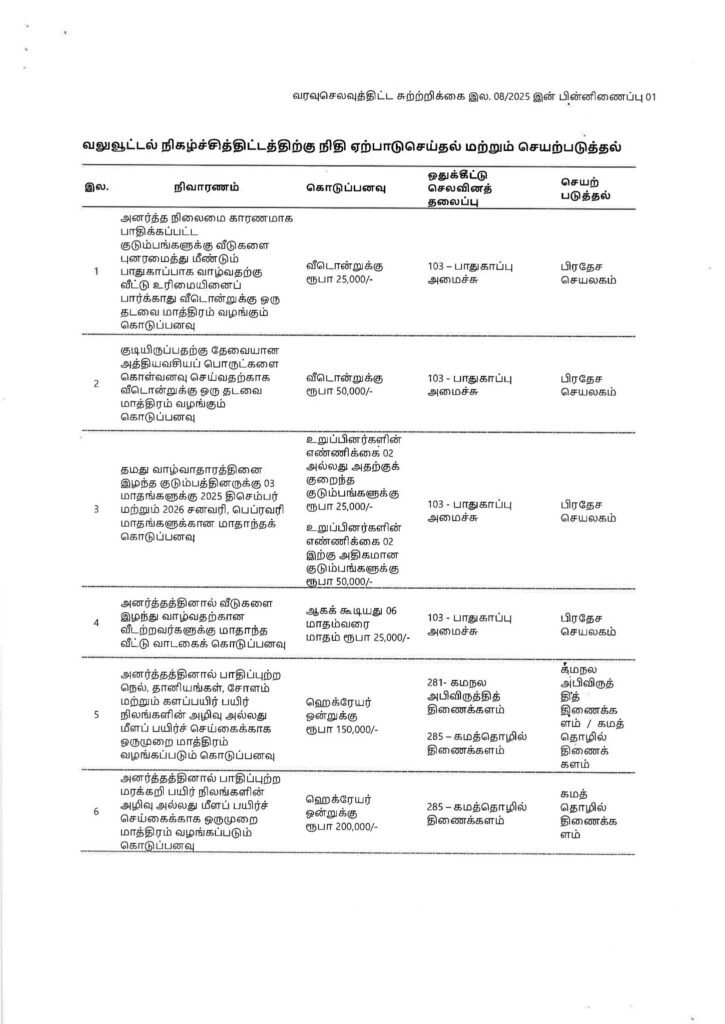 பேரிடரால் நிர்க்கதியான மக்களுக்கு வழங்கப்படும் முழுமையான நிவாரணத் தொகை - வெளியானது விசேட சுற்றறிக்கை